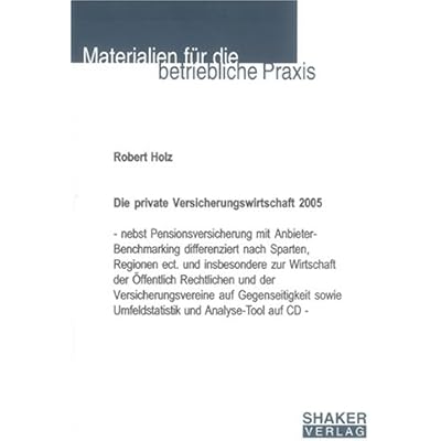 Die Private Versicherungswirtschaft 2005: Nebst Pensionsversicherung Mit Anbieter-Benchmarking Differenziert Nach Sparten, Regionen Ect. Und ... Sowie Umfeldstatistik Und Analyse-Tool Auf CD PDF Kindle